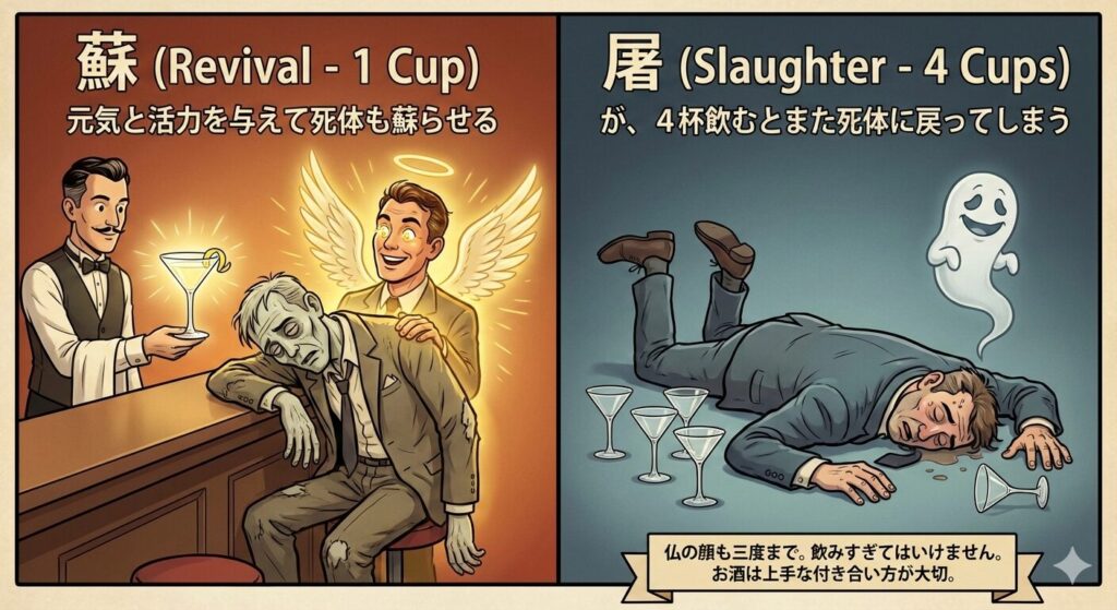 お酒は毒にも薬にもなり、「屠」にも「蘇」にもなる。上手な付き合い方が大切なようです。