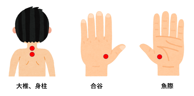 大椎、身柱、合谷、魚際