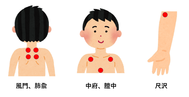 風門、肺兪、中府、壇中、尺沢